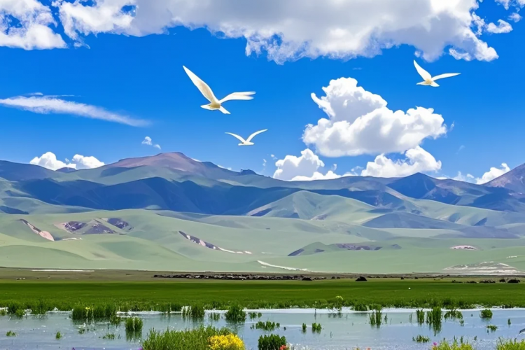 早餐后乘车前往位于热当坝的草原湖泊【花湖】,花湖位于四川省阿坝藏族羌族自治州若尔尔盖国家公园的组成部分,水域面积 300余亩,因夏季水中开满芳香的花朵而得名,陶醉在美景中,与水鸟嬉戏,寻找黑颈鹤的足迹。后前往唐克乡直达【黄河九曲第一湾】,拍摄"飞,秋水共长天一色"的美景,这里是四川、青海、甘肃三省的交界地,从源头缓缓流来的折九拐,与支流白河交汇,在草原上留下了优美的景致和美丽的传说,这里河水清澈、游鱼特且壮丽,现为国家 AAAA 景区。游玩结束后入住酒店休息。