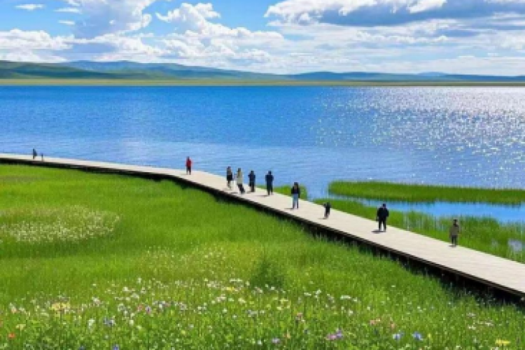 的青草铺就的小路走向湖边,恍惚走向仙境的感觉! 游览结束后入住阿坝携程4钻酒店休息。